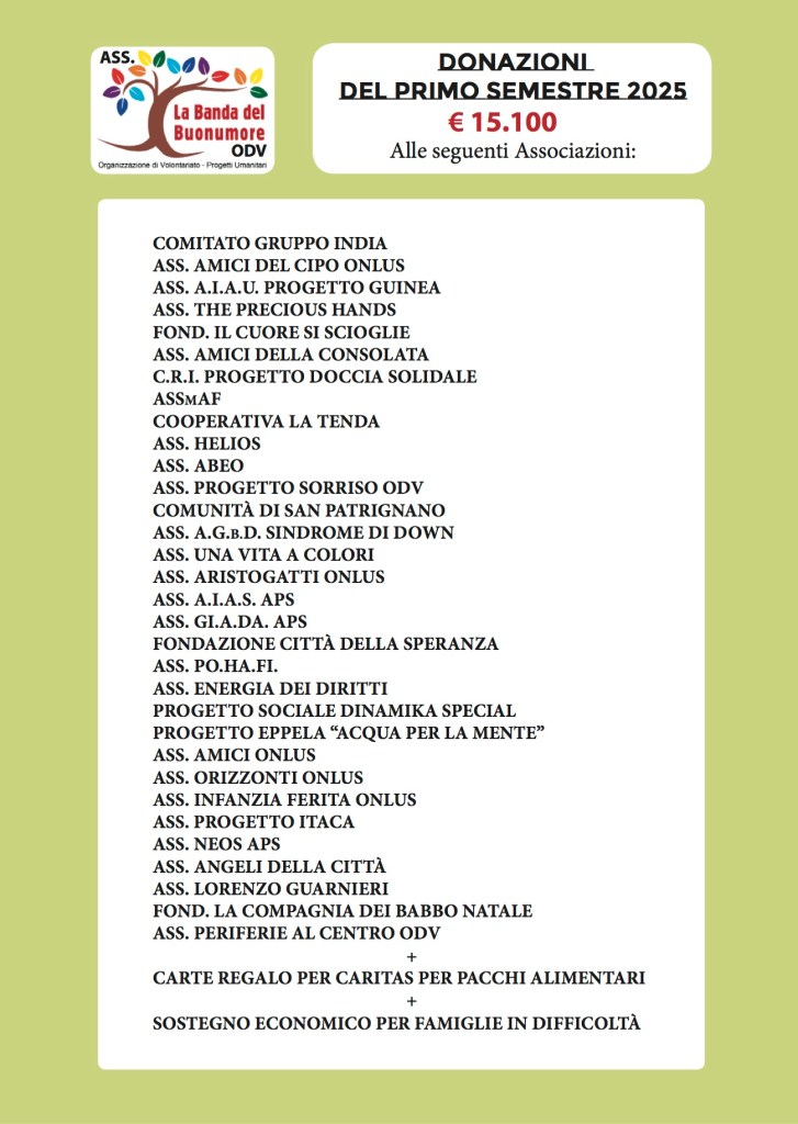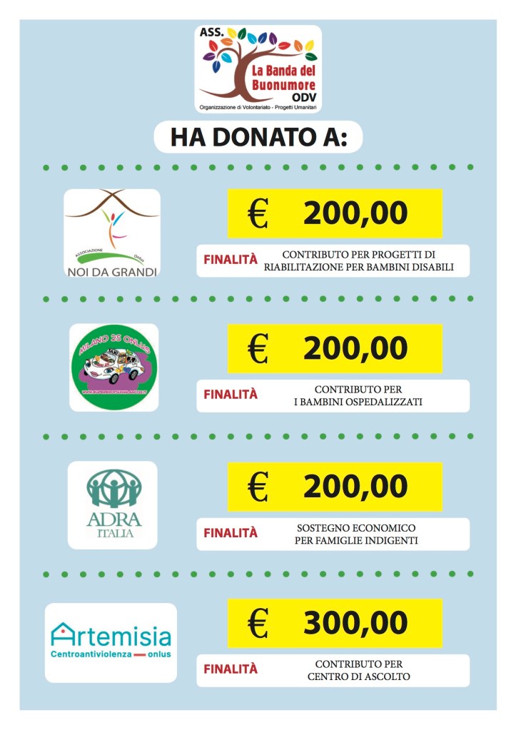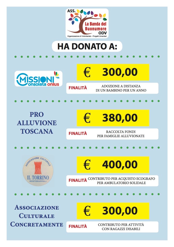 Donati nel primo semestre € 11.610,00 alle seguenti Associazioni: